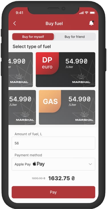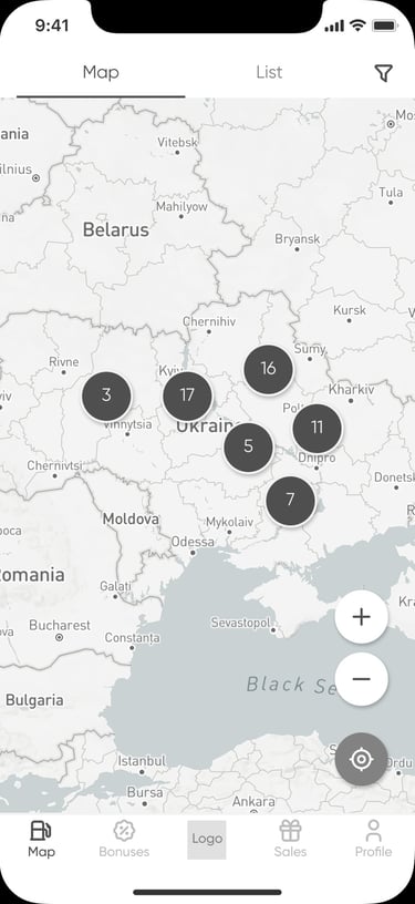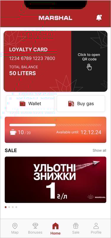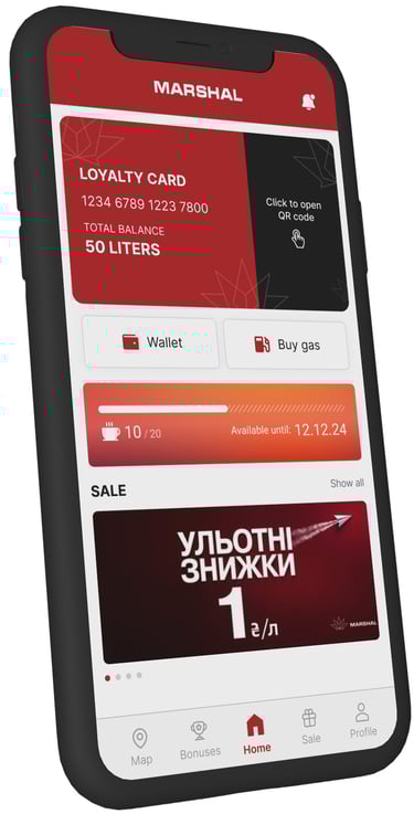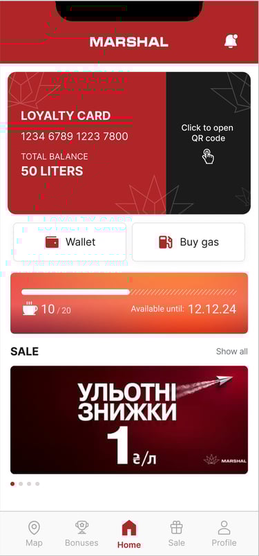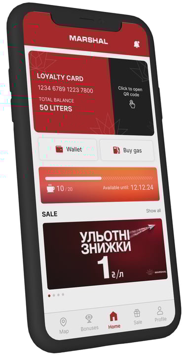 Marshal Ukraine is a mobile app that combines essential fuel station services with loyalty and navigation features. Users can calculate fuel usage, find and map the nearest gas stations, access the latest promotions, and manage their loyalty program—all in one place. I helped steer this project’s UX and UI to make these complex functions feel seamless, usable, and engaging.
