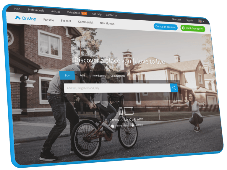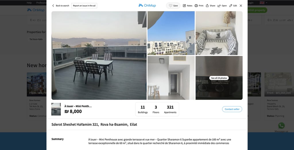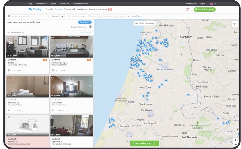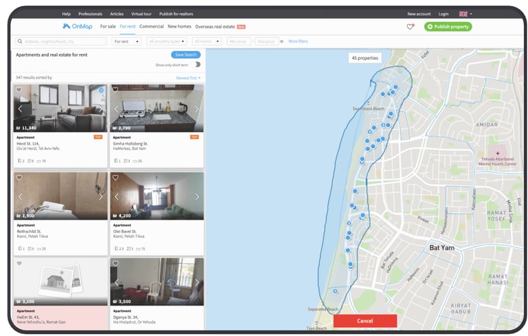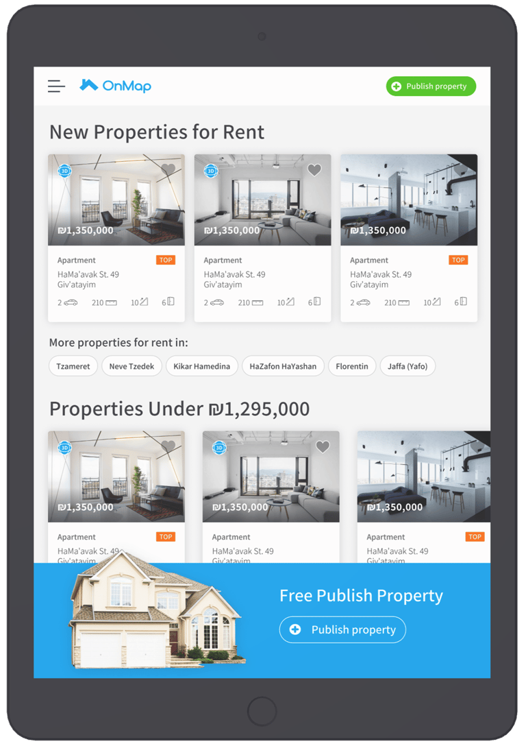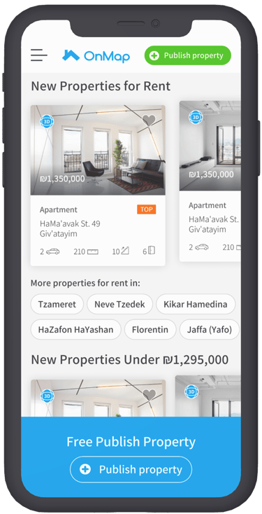 OnMap is a real estate listing website and mobile app serving the Israeli market, designed to simplify the process of buying, renting, or selling properties.